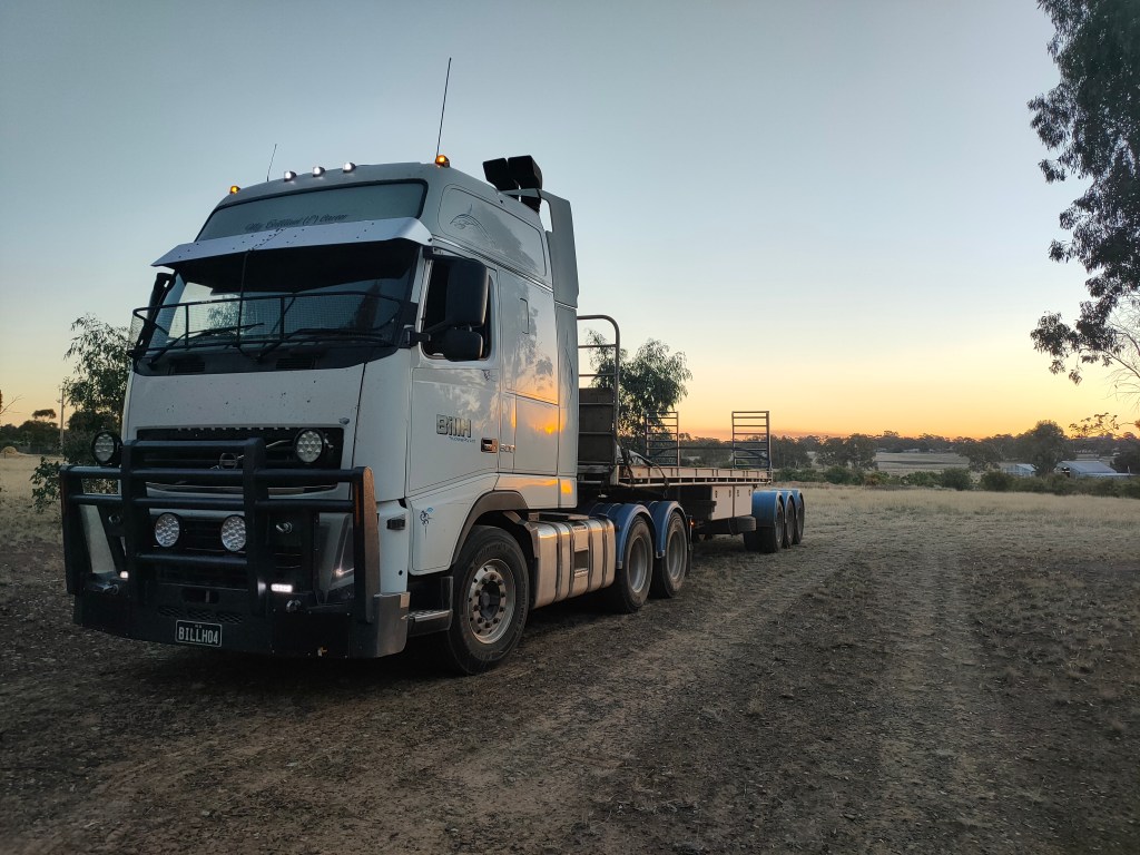 In Australia a trailer with wheels at the front, and pulled via a drawbar to the next trailer is called a ‘dog’. So a dog run is the taking of that trailer to the road train assembly point. My trailers aren’t dogs but I use the expression anyway. Coming out of Melbourne I ‘dog run’ one trailer up to Charlton, 240 km, and then go back for the other two. I can then run as a road train up through north west Victoria (the Mallee) and across South Australia to Western Australia.