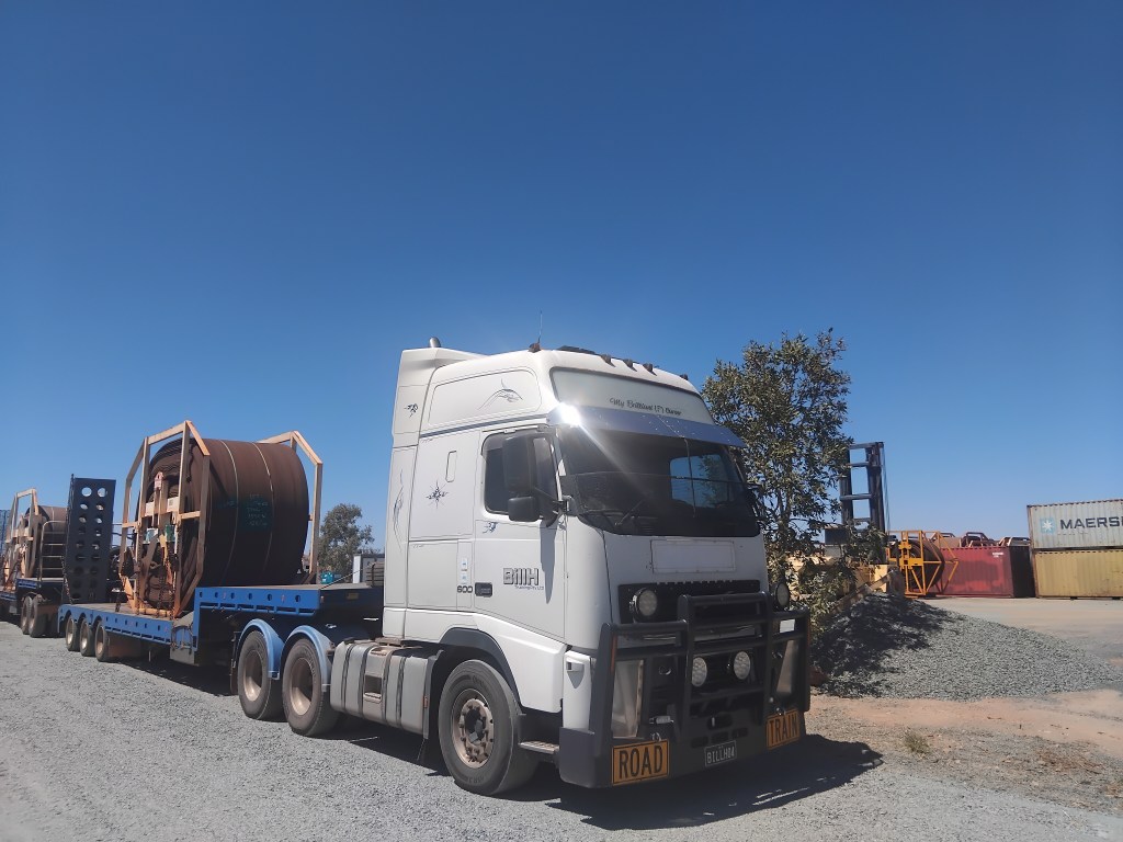 September 17, 2025September 17, 2025wadhollowayLeave a Comment on Pt Hedland-Perth, 08.09.25 Pt Hedland-Perth, 08.09.25 Mon. Load 2 reels old conveyor beltTue. Road train to PerthWed. Unload. Home. Round trip 9,000 km Share this: Click to share on X (Opens in new window) X Click to share on Facebook (Opens in new window) Facebook Like Loading...